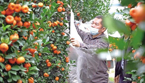 种植户在给准备运输的年桔打包装。林倩宇 摄