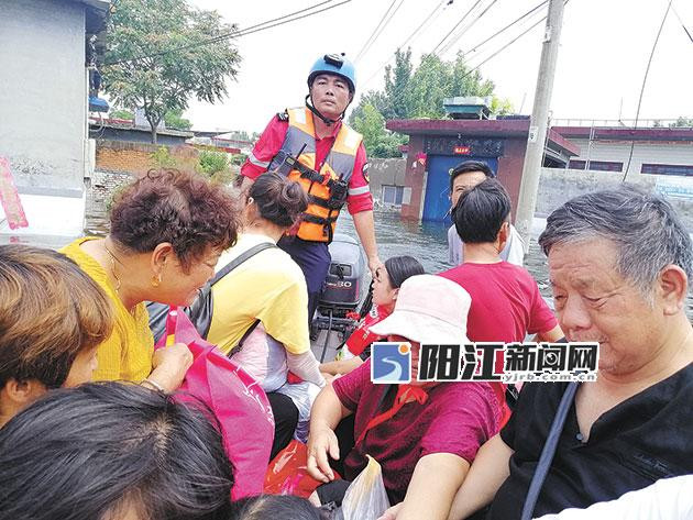 余仕强在河南参与抗洪转移当地居民(资料图片)。阳春市神鹰救援队 供图