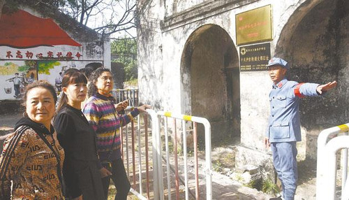 张志强向游客讲述红色故事。 刘再扬 摄
