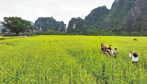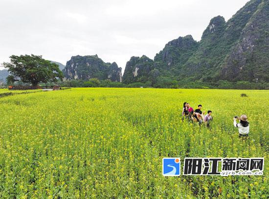 连日来,在距离阳江市区约90公里的阳春春北山水画廊示范带上,春湾镇那星村福塘岗自然村的连片油菜花正争相怒放,每天都有游客纷至沓来,成为我市近期乡村游的一个热门打卡点。这里是典型的喀斯特地貌山水田园风光村,田间盛开的油菜花与周边群山相映成趣,构成一幅美丽的乡村画卷。