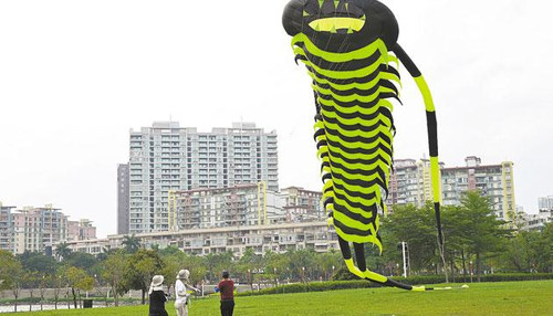 4月15日下午3时许,烈日当空,市区鸳鸯湖畔南国风筝场放风筝的市民寥寥无几,学生们都在校园里上课。阳江三中体育教师陈巍却带着学校的风筝队来到这里,放起了一个又一个风筝。