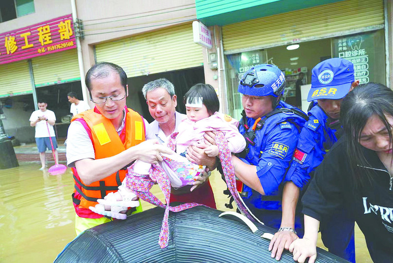 阳江蓝天救援队于清远转移群众。 蓝天救援队 供图
