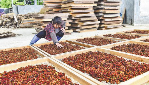 8月22日,阳春市春城街道蟠龙村的村民在晾晒春砂仁。