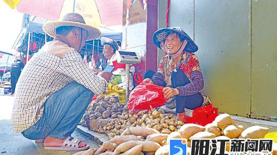记者赶圩时发现,眼下正值香芋丰收上市的季节,上洋圩上的香芋个头较大,而且价格亲民,一斤只要4元。上洋镇政府工作人员陈雅思告诉记者,上洋的香芋以个头大、香味浓闻名,深受阳江本地市场欢迎。香芋喜泥质土壤,适宜在干爽的地方种植,上洋出产的香芋较其他地方的香芋具有营养丰富、品种纯正、含淀粉多、香浓、松口等特点。“种植芋头比种植水稻方便许多,种出来的芋头基本是自家吃,多余的就趁着圩日来卖。”当地村民告诉记者,当地村民的主要收入来源是承包土地种植西瓜,或是外出打工。在劳动力不足的情况下,种植简单的芋头成了当地村民首选的农作物。