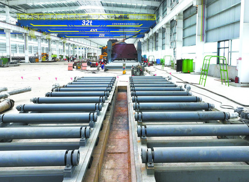 “项目包含两个车间厂房,目前直缝管车间已基本完成建设,舾装车间在加快推进厂房建设,整体施工进度已完成了75%。”项目副总经理曹骏洲介绍,当前,部分为生产“量身定做”的设备已逐步到位,工人们正加紧进行安装和调试工作,力争实现年底前完成设备进场安装、年后具备投产条件的预期目标。