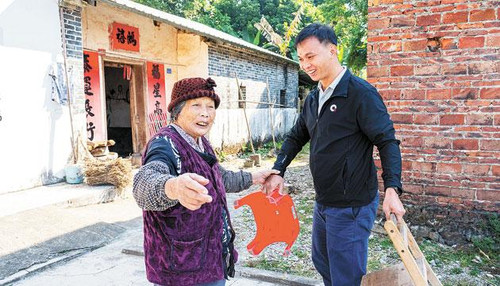 詹世健上门探访村里的长者,了解其日常生活和身体状况。 梁文栋 摄