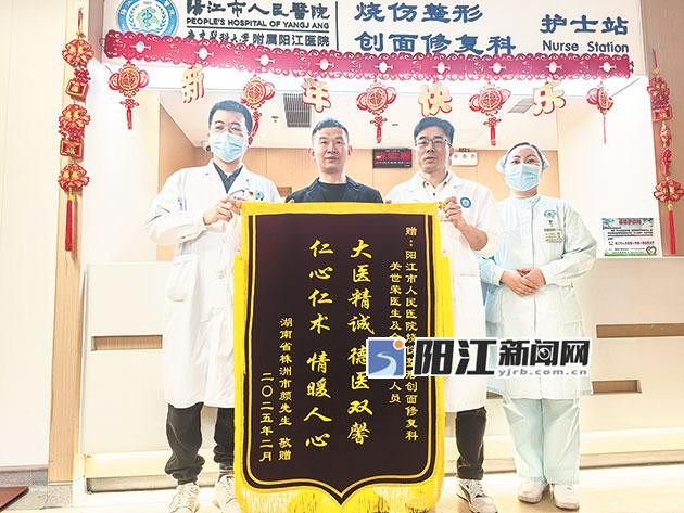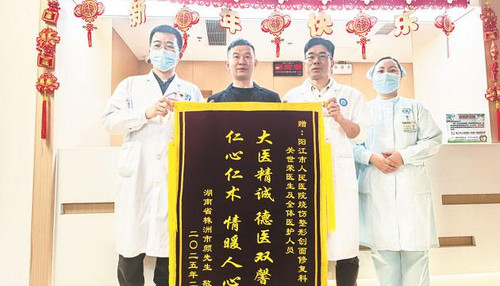 “我真的没有想到30多年的褥疮能被治好,太感谢医生、护士了!”颜武国握住李孟和的双手连连致谢,他的儿子颜先生向李孟和以及关世荣送上“大医精诚,德医双馨。仁心仁术,情暖人心”的锦旗。颜先生表示,在治疗期间,烧伤整形创面修复科的医护人员对他父亲精心照顾,服务态度非常好,让他们一家都感到非常温暖。