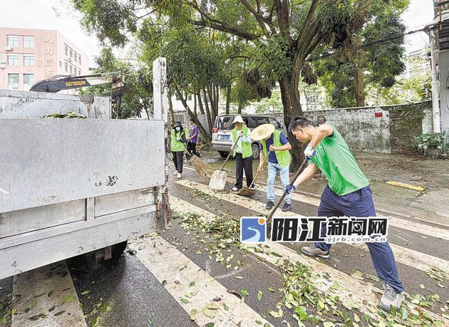 作为城东街道鸳鸯湖社区的挂点单位,阳江日报社组织了30多名员工下沉社区参与清障。在社区道路两旁,报社员工有的手持油锯精准切割断裂树枝,随后合力将枝干搬走;有的细致清扫道路两侧的落叶与杂物。在大家的协作下,原本杂乱的路面逐渐恢复整洁。