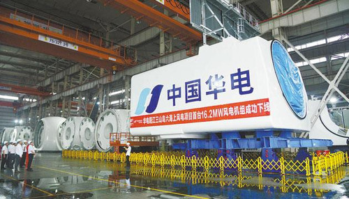 华电阳江三山岛六海上风电项目首台16.2兆瓦风电机组下线仪式举行。 谭文强 摄