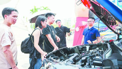 市民向销售人员详细了解心仪汽车的各种性能。 梁文栋 摄
