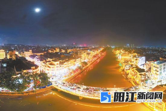 明月下,河堤路、西濑风情景区一带洋溢着浓浓的节日氛围。 梁文栋 摄