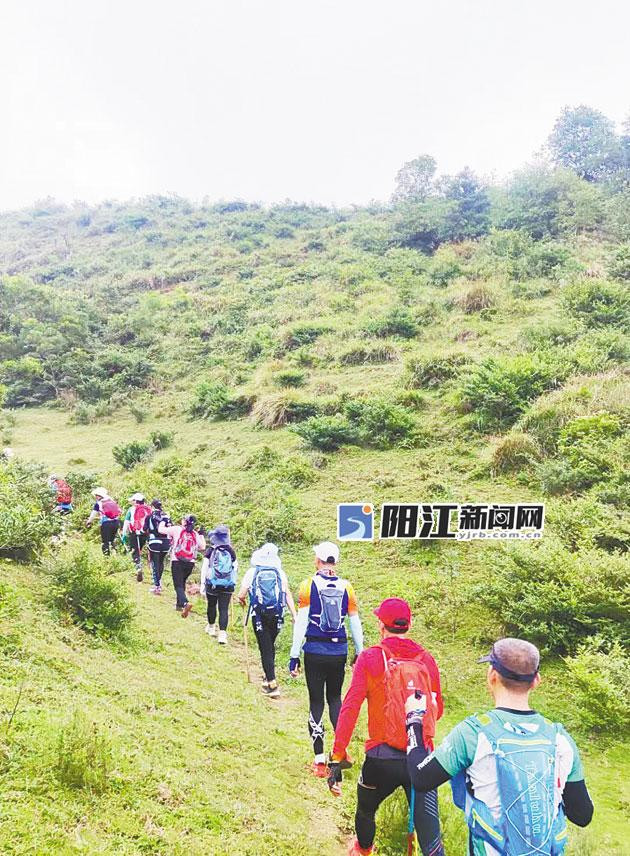 徒步越野爱好者在阳春永宁山间徒步。