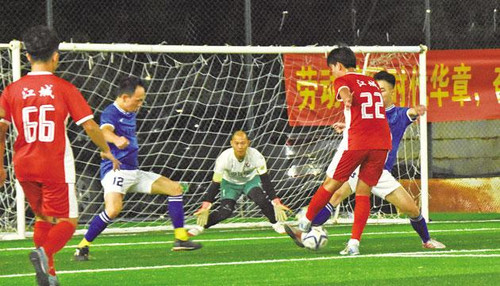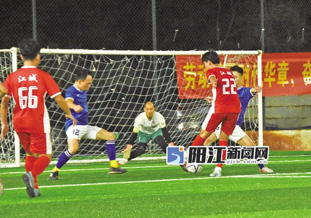 晚上8时许,阳东区总工会队和江城区总工会队两队运动员上场,揭幕战正式打响。阳东区总工会队通过任意球大力抽射,率先攻破球门,1比0领先。落后的江城区总工会队迅速调整状态,组织进攻,最终追平了比分。揭幕战双方以1比1握手言和。
