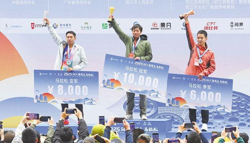 “环境非常优美,跑起来的心情轻松愉悦,能够取得冠军非常开心!”男子“全马”冠军吴志锦来自重庆,夺冠成绩为2小时24分34秒。他表示,首次来到阳江参赛,对滨海赛道的印象深刻,环岛路段能看到浩瀚的大海,沿途有许多表演活动,能够感受到整个城市活力十足。