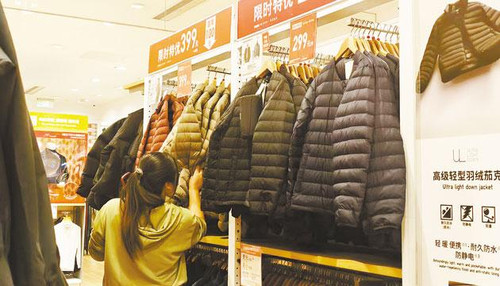 随着气温逐渐下降,市区各大商场的冬季服装区域人气明显升温。17日,记者在市区百利广场一家连锁服装品牌店看到,不少经典款羽绒服已经上新,售价集中在299元至799元。其中,一款充绒量151克、绒子含量90%的鸭绒服售价为799元,而充绒量45克和71克的款式则分别标价299元和399元。