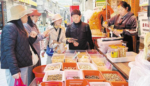 游客在大澳旅游景区购买海味。 陈建华 摄
