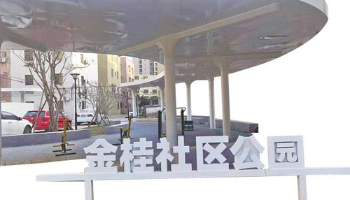 27日下午,记者接连走访了3个口袋公园。在金桂二路的口袋公园,园内的绿植仍处在移植养护期。白色弧形遮阳棚下,黄绿相间的全新健身器材整齐摆放,一位老人正带着孩子在器材旁玩耍,几位居民坐在一旁,晒着太阳闲聊。“以前楼下没地方歇脚,现在有了公园,带娃、健身都方便。”居民陈阿姨笑着说。