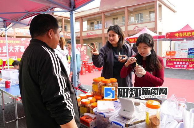 活动现场,20多个年货摊位整齐排列,年货美食、特色农产品、年花年桔等一应俱全。许多市民在摊位前驻足试吃、精心挑选,询价声与笑语声不绝于耳。当地村民许姐的摊位上摆满了粽子、粉酥、油角等传统年货,她笑着告诉记者,自己平时就制作点心售卖,得知村里举办乡货集市,特意预订了摊位。“春节快到了,生意特别好,这几天每天都要现做五六千个粉酥。”许姐说。
