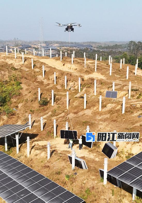 无人机吊运光伏板。