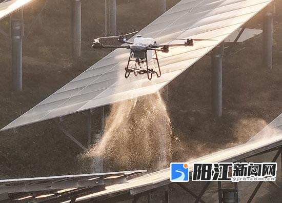 无人机清洗光伏板。