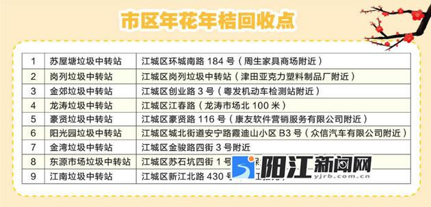 据盈飞环境科技有限公司经理李志鹏介绍,此次9个回收点利用市区现有垃圾中转站,增设临时大型垃圾放置点,作为年花年桔专项回收点,便于后续统一清运,集中运往焚烧发电处理。