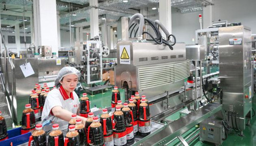 据介绍,致美斋阳江公司目前共有13条生产线,工人仅200余人,单一生产线每小时最高产能可达2.4万瓶调味品。王红涛告诉记者,2025年4月,致美斋将广州生产线整体搬迁至阳西,阳西项目一期计划产能15万吨,其中酱油10万吨。自投产以来,公司产销势头持续向好,订单量稳步攀升。“春节期间和节后市场反应热烈,订单量已创历史新高。今年我们将重点推广酱油、醋、蚝油等大单品,同时保持其他品类稳定增长。”王红涛介绍。