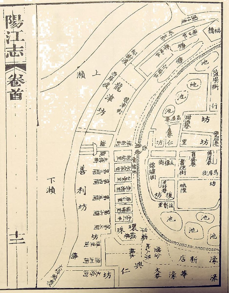 然而梓里相依,苔岑各契。涣而不萃,无以见相恤而相赒也;疏而不亲,无以广同声而同气也。此地汉属高凉,渐开风会;隋当萧铣,县置阳江。版图叠隶于高恩,沿革代更于唐宋。自绍圣五年而土城始筑,自洪武四年而又改砖城。编户者五十里有奇,分叚者十二街相错。