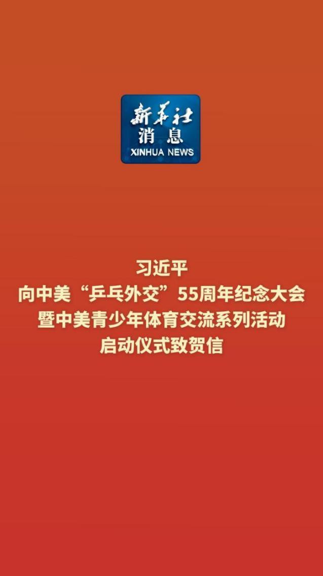 4月10日,国家主席习近平向中美“乒乓外交”55周年纪念大会暨中美青少年体育交流系列活动启动仪式致贺信。
