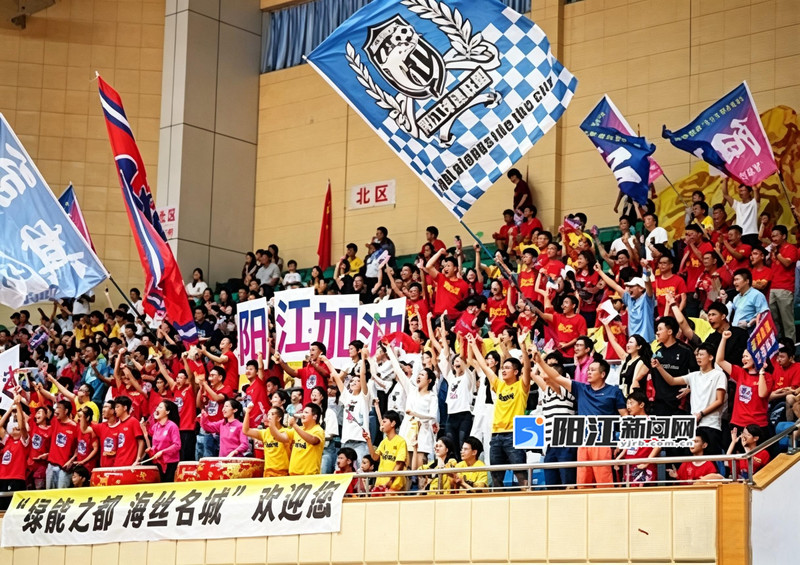 进入加时赛,阳江助威团为球队加油鼓劲。