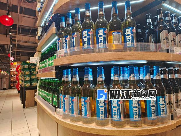 4月18日,记者来到市区盈信广场的昌大昌超市,啤酒区内各类品牌、款式的啤酒琳琅满目。其中一款“珠江0度”玻璃瓶装啤酒被放置在货架中间显眼位置,瓶身正面未标注明显的“含酒精”提示,仅在瓶口处印有“冰点酿造”字样。记者仔细查看配料表发现,该款啤酒酒精度≥3.6%vol,与市面上普通啤酒的酒精含量基本持平。
