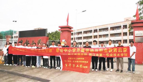 “百县千镇万村高质量发展工程”(下称“百千万工程”)实施近两年来,阳江技师学院、阳江市第一职业技术学校(以下简称“两校”),按照省委“1310”具体部署和市委“433”工作安排,以职业教育高质量发展为抓手,在职业教育产教融合、校企合作、创新创业、就业升学等方面下足功夫,致力于培养更多更实用的技术技能型人才,助力“百千万工程”提质增效。