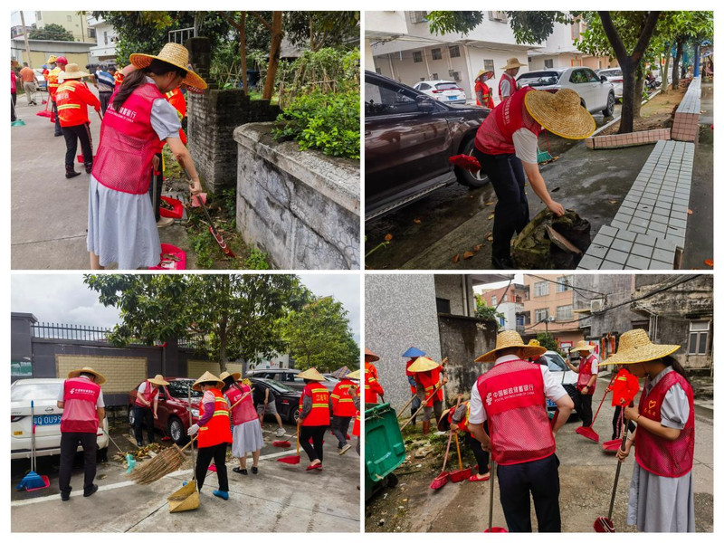 活动中,志愿者们身穿红马甲,与村委党员干部、当地村民一道,手持扫把、锄头、铲子、割草机等清洁工具,紧锣密鼓地清理村头巷尾、房前屋后堆积的杂物、杂草、生活垃圾等,做到不留卫生死角。参加活动人员按照分工有序开展环境卫生清理,共同营造干净整洁的乡村人居环境。在大家团结一心齐参与下,周边街道环境换新颜,周边村民纷纷点赞并参与其中。