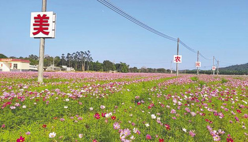 据了解,去年12月,亨垌村利用进村主干道两侧的冬闲田种植了40亩波斯菊,今年1月中旬,这批鲜花相继开放,吸引了不少市民、游客前来打卡拍照,预计春节期间迎来最佳观赏期。
