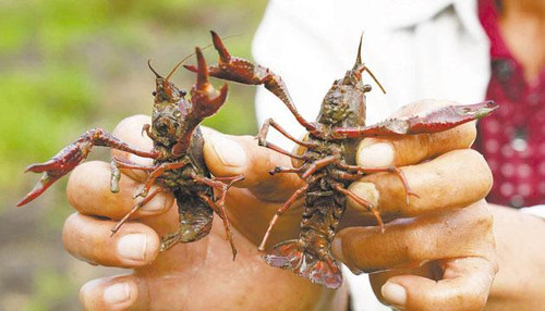 村民展示养殖的小龙虾。袁荣泽 摄