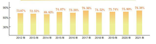 十八大以来我市民生类支出占当年支出比例